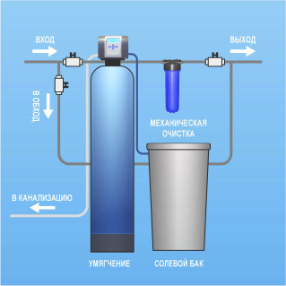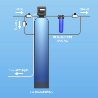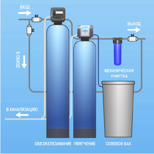 Комплексная система очистки воды. Убирает железо и жесткость.